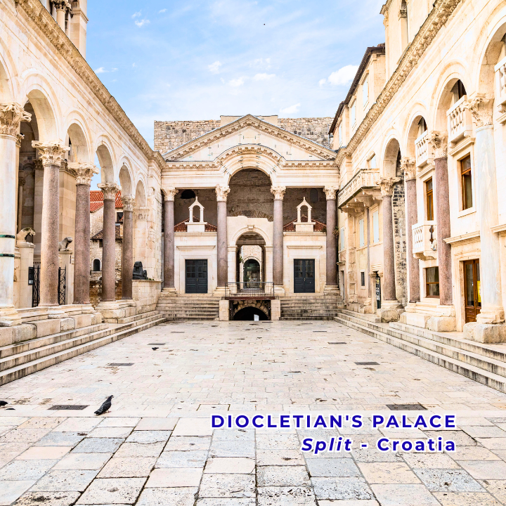 • Cung điện của Diocletianus (Diocletian's Palace) – là một khu phức hợp cung điện-pháo đài La Mã cổ đại ở Split, Croatia, được Hoàng đế La Mã Diocletian xây dựng vào cuối thế kỷ 3 đến đầu thế kỷ 4 sau Công nguyên như nơi nghỉ hưu cuối đời. Ngày nay, cung điện là một phần của khu phố cổ Split và đã được UNESCO công nhận là Di sản Thế giới (Chụp ảnh bên ngoài).