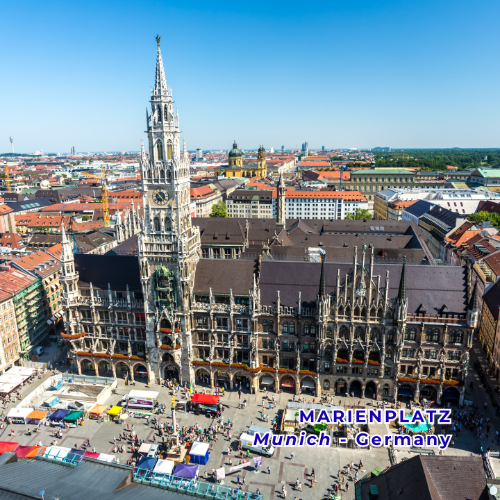 • Quảng trường Marienplatz – là trung tâm lịch sử và văn hóa của thành phố, được biết đến với kiến trúc ấn tượng như Tòa thị chính Mới và Tòa thị chính Cũ. Nơi đây nổi tiếng với Cột Đức Mẹ (Mariensäule) và màn trình diễn chuông Glockenspiel ở Tòa thị chính Mới.