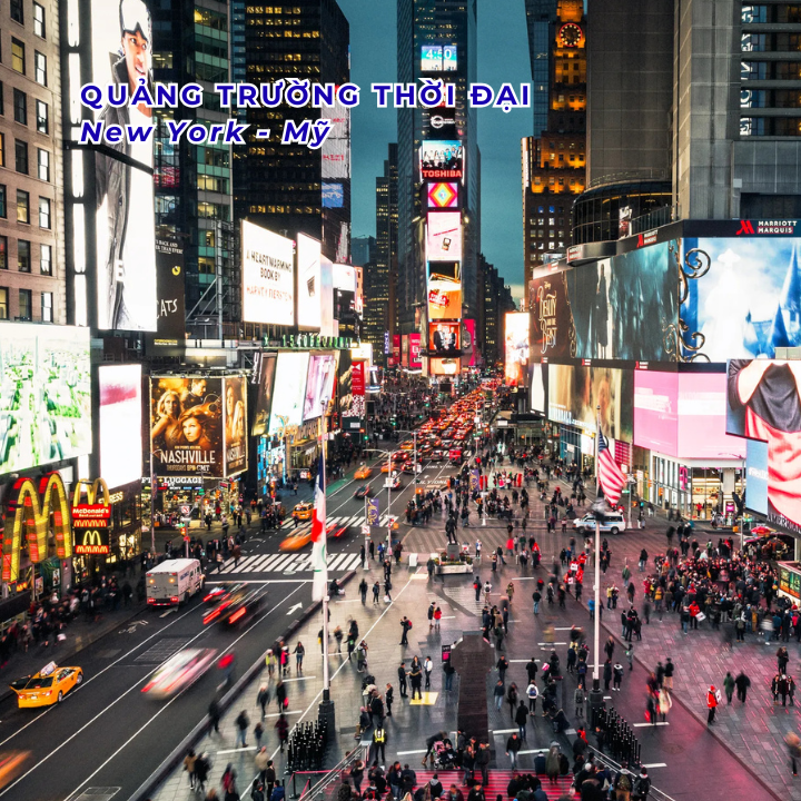 • Quảng trường thời đại (Time Square) – khu phố nổi tiếng ở Manhattan với biệt danh "Giao lộ của thế giới", là một trong những điểm đến sôi động và nổi tiếng nhất thế giới.